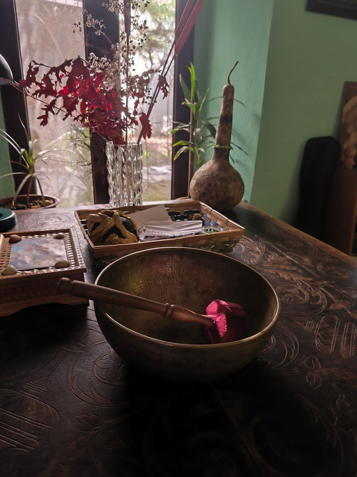 In mijn werk nodig ik je uit om te vertragen. Om via klank, via creatie, via opstellingen een laag dieper te zakken dan je hoofd gewoon is. Want vaak weet je lichaam het al lang. En soms heeft het alleen een veilige bedding nodig om het te tonen.
